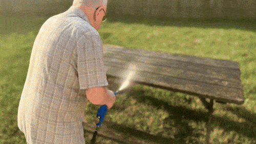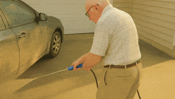 He connected it to the hose in seconds… and when he squeezed the trigger, I thought I gave him a heart attack!
