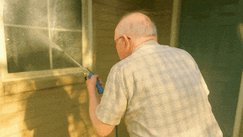 He blasted years of mildew off the siding in seconds.
